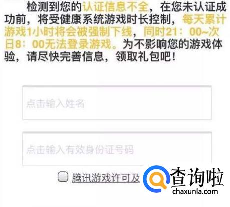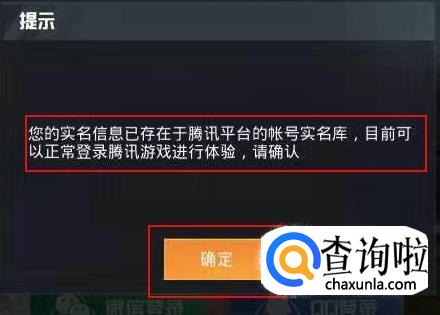 登录后就有提示说已经存在于账号实名库了,点击确认。以后玩游戏就没有时常限制了!