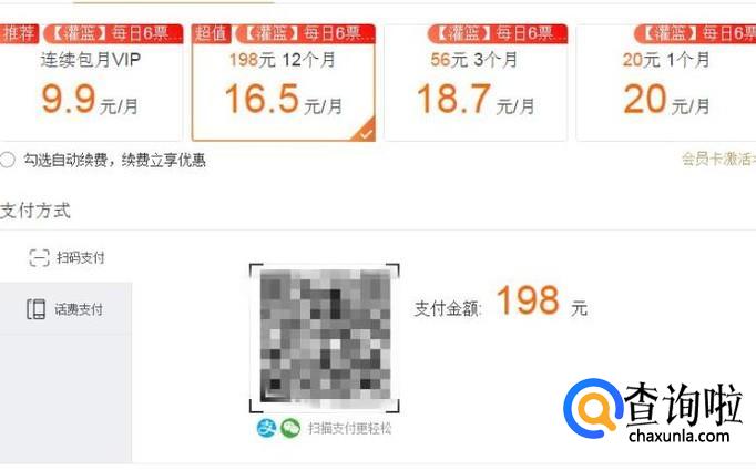 最后选择我们想要开通的月份,并用微信或者是支付宝扫描一下屏幕中的二维码,完成支付动作就可以了。