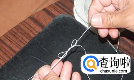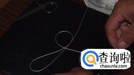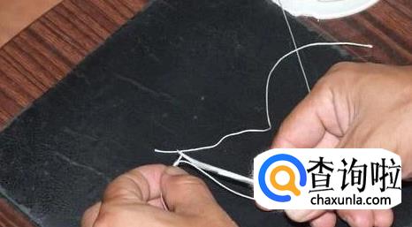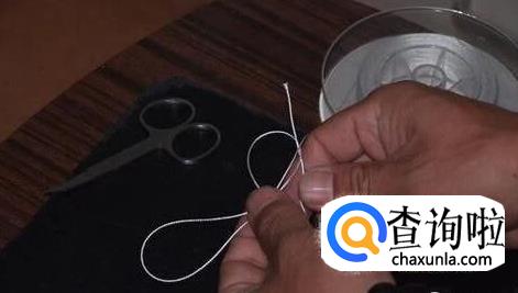 缠绕完成后,两手拉住线结两端抽紧线头。抽紧线头后,用剪刀剪断余线。