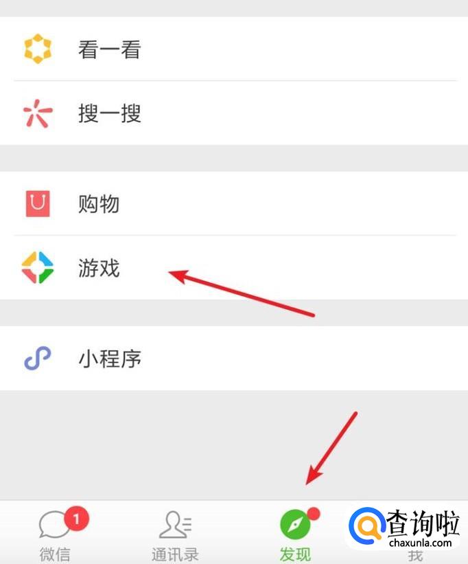 打开微信下的‘发现’,点击‘游戏’