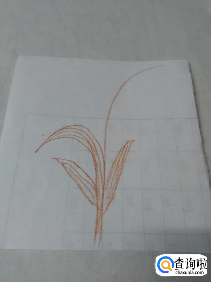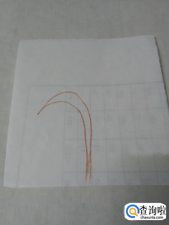 先用棕色彩笔在纸上画两条弧线,表示一片芦苇叶。