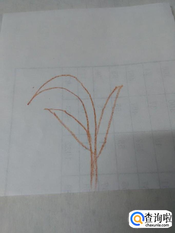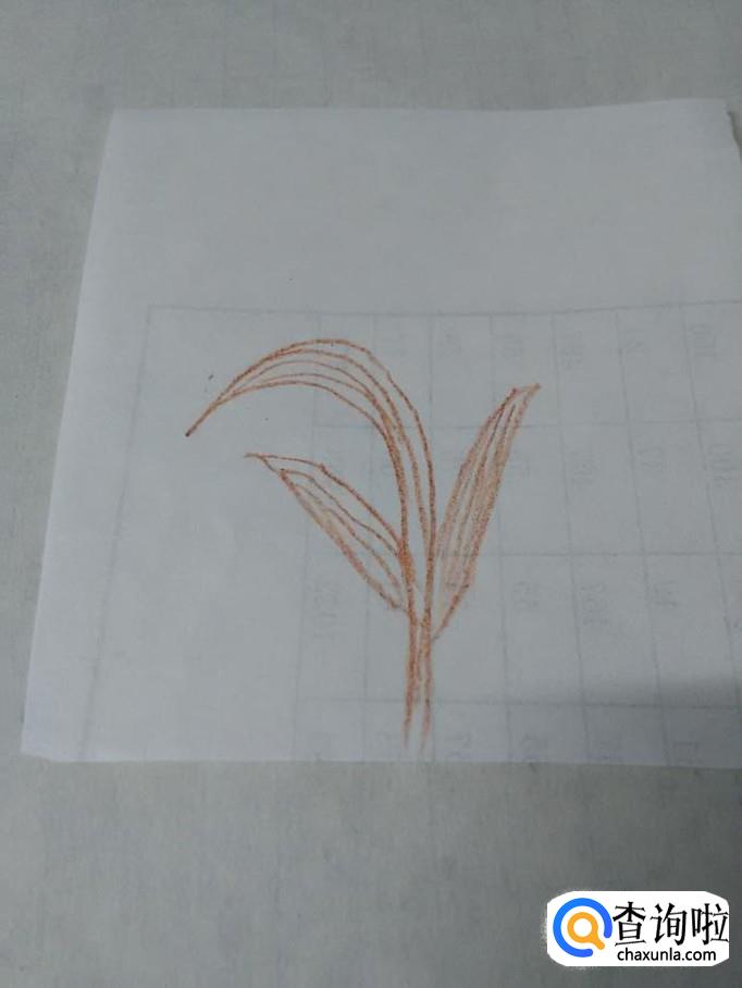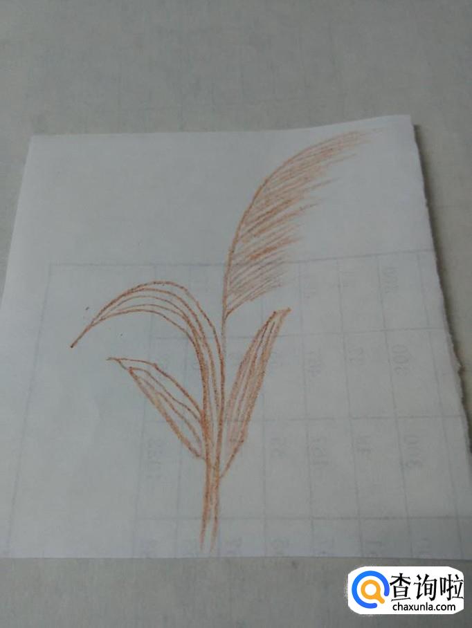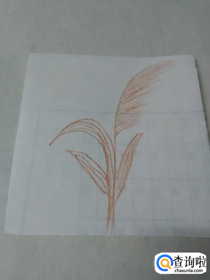 在芦苇叶的左右两侧,再各画两条弧线,表示另外两片芦苇叶子。