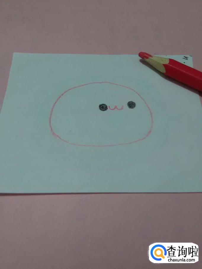 用粉红色在两只眼睛之间,画一个躺着的3,表示它可爱的小嘴。