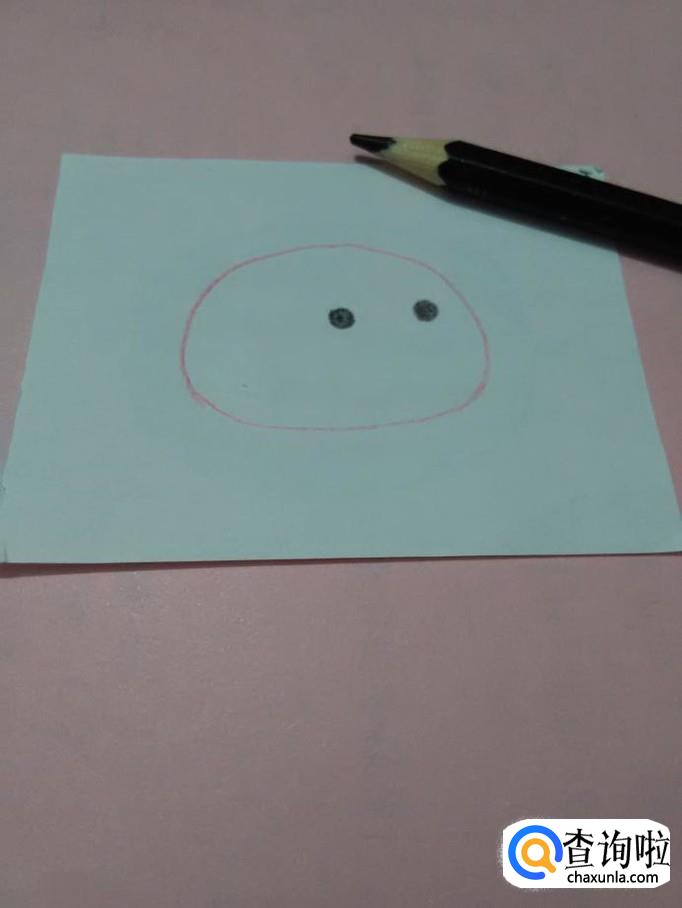 用黑色笔在头上画两个圆圆的黑点,表示眼睛。