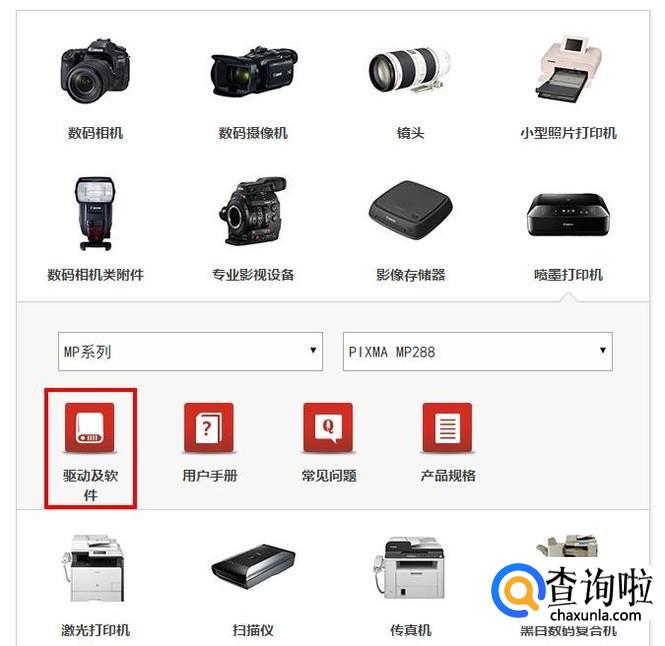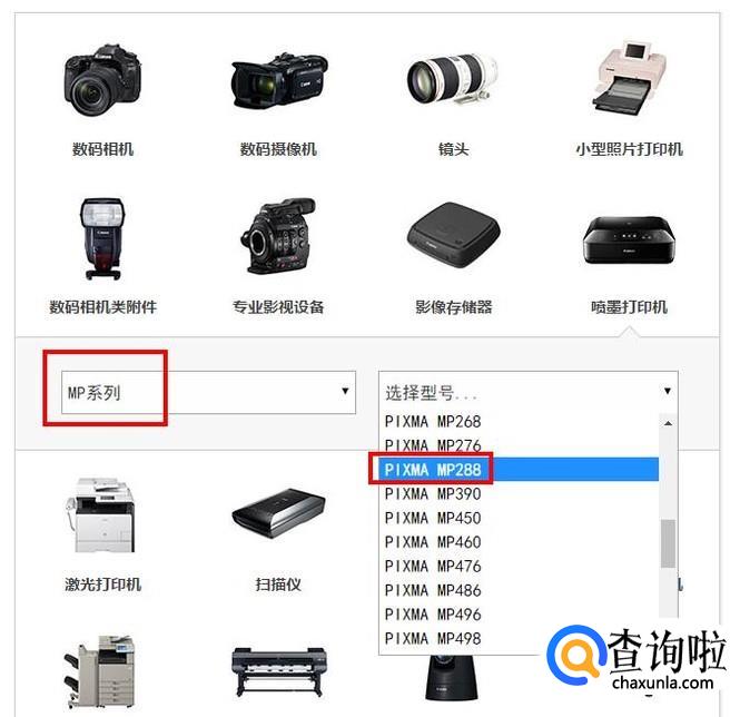 再依次选择“MP系列”以及“PIXMA MP288”;