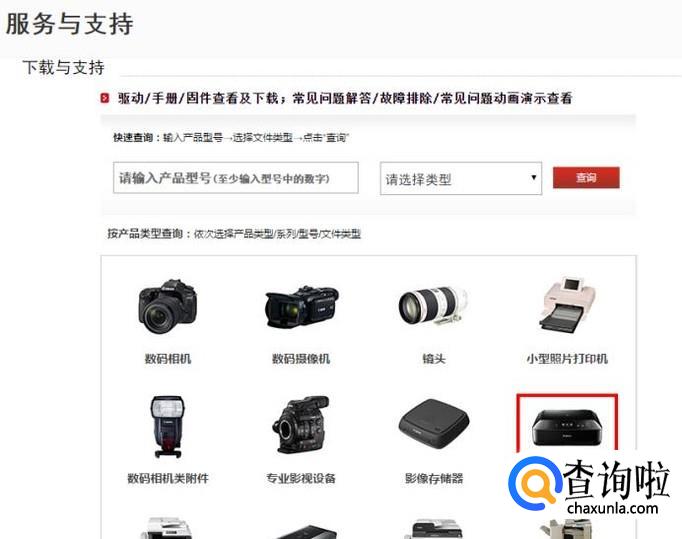 在打开的页面中找到“喷墨打印机”,或者在上方输入产品型号;