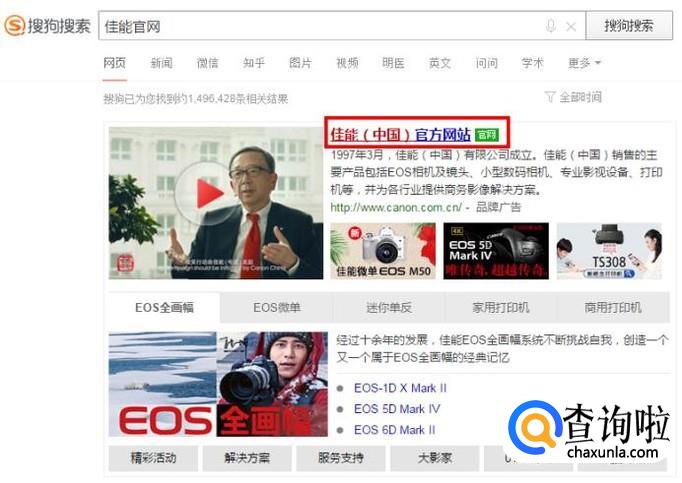 首先在搜索引擎中搜索佳能官网,选择带有官网字样的链接点击;
