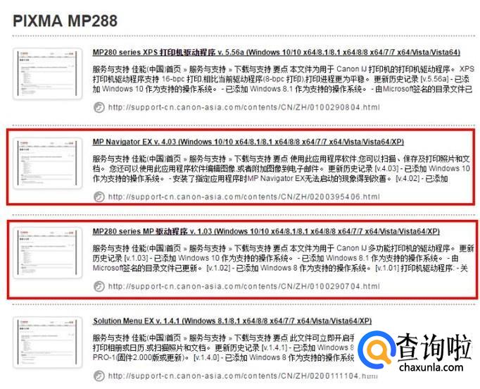 图示红框为所需要的驱动软件,上方为扫描软件,下方为打印机驱动,分别点击两个链接进入下载页面;