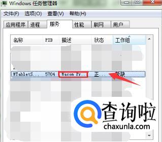 如果是依旧没有反应的话,那么我们打开”任务管理器“,在”服务“下面找到“wacom professional service”进程,如果状态为禁止的话就点击右键,选择启动就行了。