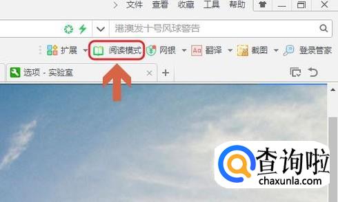 然后浏览器右上角登录管家这一行就能够看到“阅读模式”这一项,不过根据小编的实践操作,有时候即使勾选了刚才的阅读模式也不会弹出这个选项;