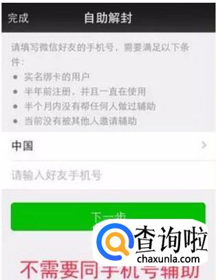 进入自助解封流程,按提示输入手机号码。