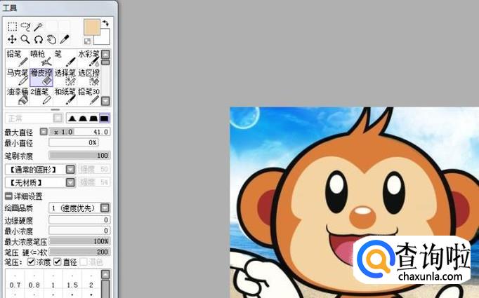 在SAI软件里,可以把人物P到另一张照片里,下面就用这个小猴代替人物,把它P到大海的图片里。