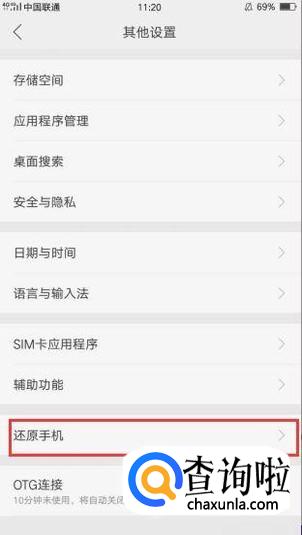 我们进入到其它设置后,我们就可以看见恢复手机选项,我们点击恢复出厂设置,根据需要选择恢复。
