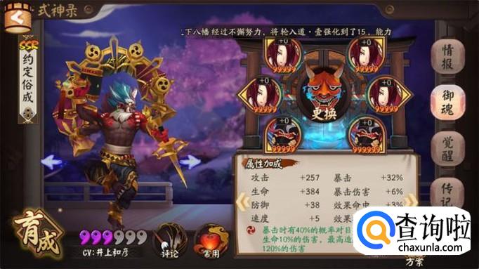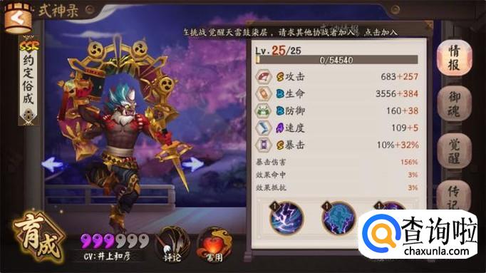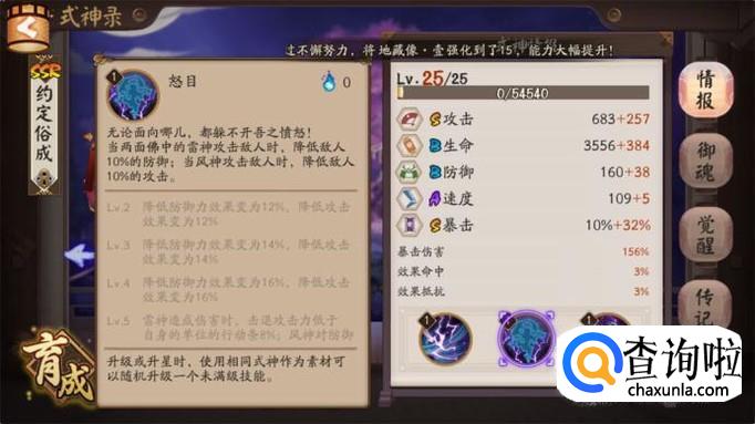 首先我们先来看看两面佛的面板属性,因为两面佛是商店中兑换碎片就能召唤的SSR式神,所以很多人都不重视,而作为SSR式神两面佛的面板属性中攻击和暴击都是S,而且速度还等达到A,可以说是当之无愧的SSR式神的水平,而防御和生命是B也是普遍攻击型SSR式神的平均水平。