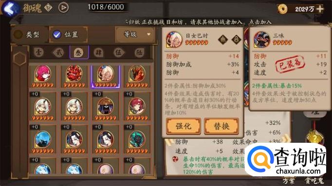 两面佛并不是全能型式神,要是带日女己时这类御魂就要主动做二号输出,不能当做主力输出使用。