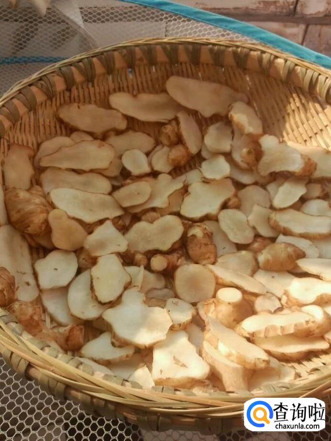 把洋姜洗净切成片,放在通风处晾干,大约晒去2/3水分。