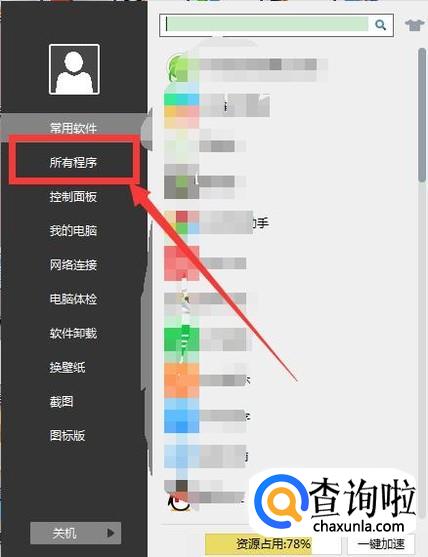 2、在弹出的菜单中点击选择“所有程序”。