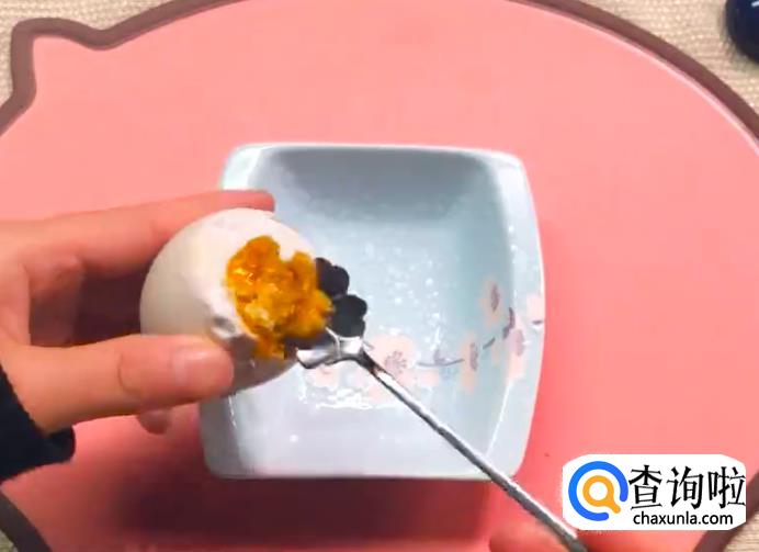 之后将咸鸭蛋打开,只取蛋黄。