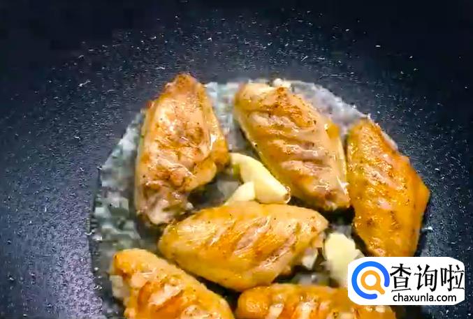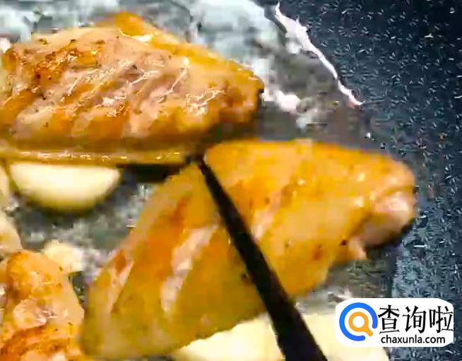 之后加入大蒜,煎至鸡肉金黄。