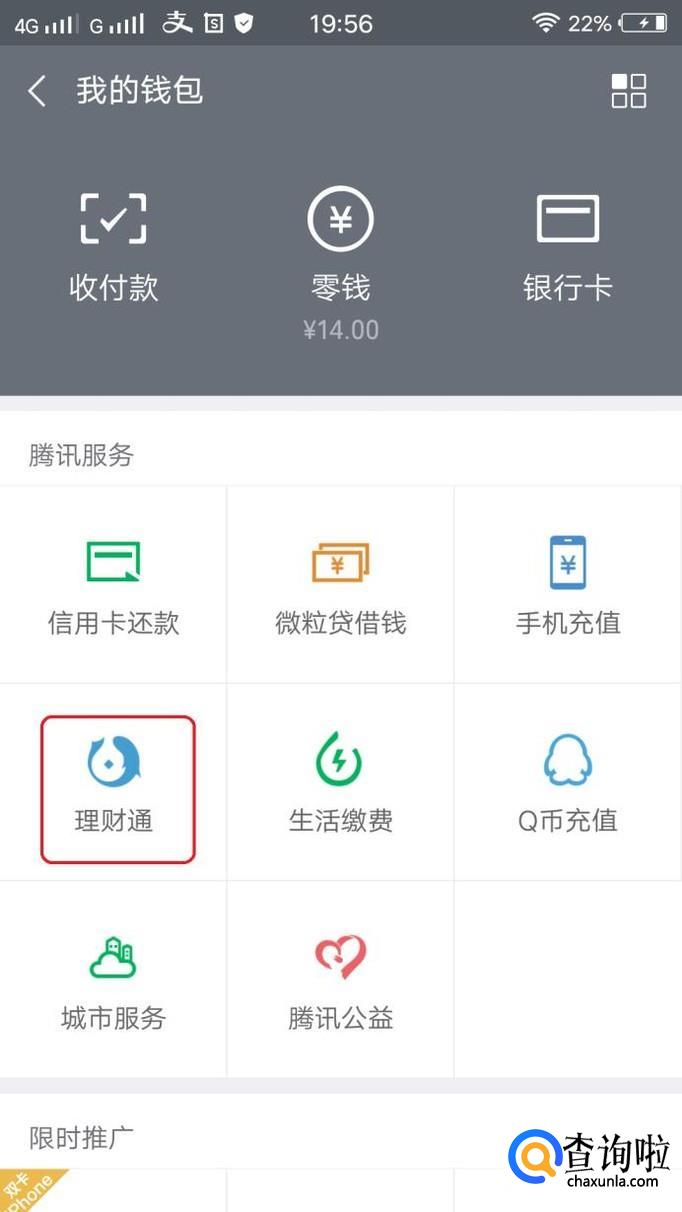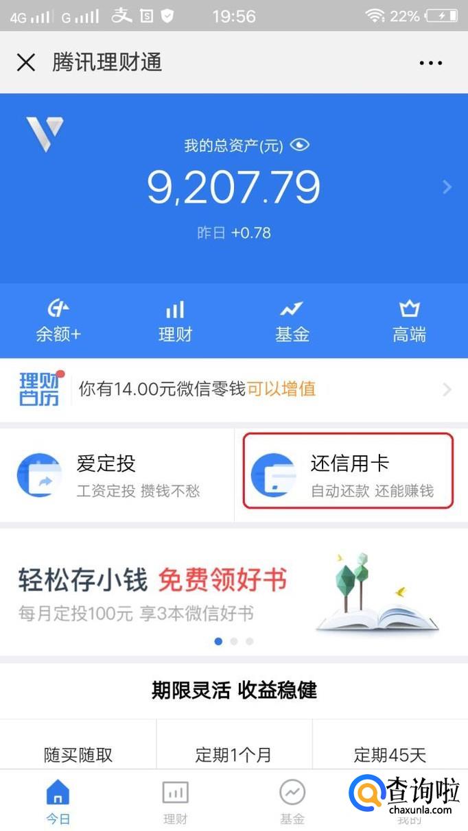 进入腾讯理财通,这是腾讯旗下的一个理财平台,我们看到中间位置有“还信用卡”,我们点击进入。