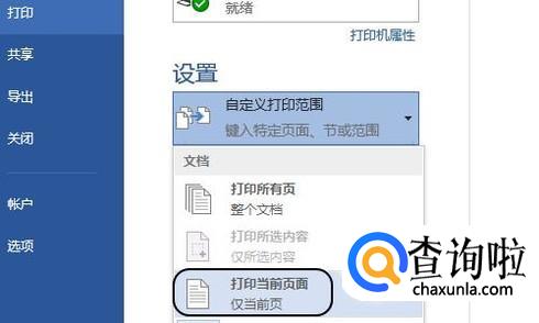 然后在左侧弹出的打印窗口“设置”中勾选“打印当前页面”,这样打印出来的就是我们刚才点击过的页面,其他页面则不会打印;