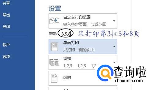 然后在下方的页数中输入“5-10”,这样只会打印第5页到第10页之间的部分了,如果需要打印不连续的页数,比如只打印第3页、5页和8页,那么在页数中输入“3,5,8”就行,如图所示;