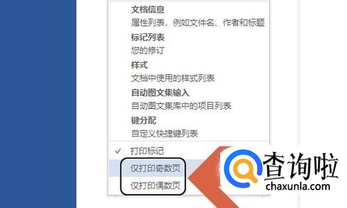 此外有种特殊的情况,那就是我们只需要打印所有文档中的奇数页或者偶数页,这样也是可以的,我们只需在设置里将系统默认的“打印所有页”更改为最下方的“仅打印奇数页”或者“仅打印偶数页”即可,如图所示...