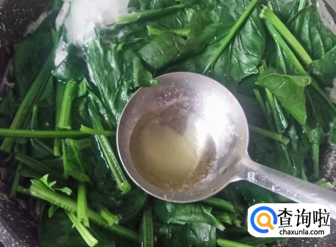 再把菠菜放进去,加适量的油、盐滚2分钟左右熄火。