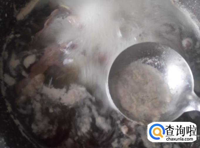 再从新煮沸,然后用勺子把浮在水面的泡泡捞出来干净。