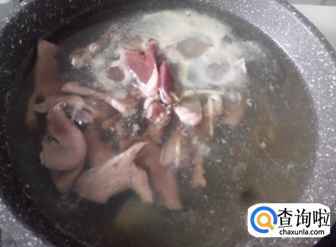 锅装适量的水加几片姜进去煮沸,然后放羊心进去。