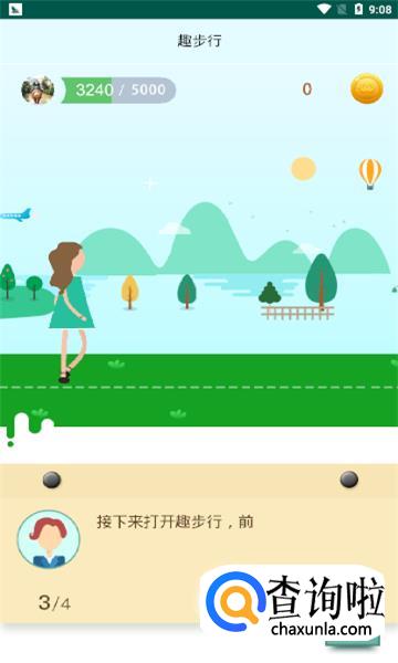 首先,我们在浏览器搜索“趣步行”,点击下载并安装“趣步行”。可以看到趣步行的首页有山有水有树,代表着绿色出行。