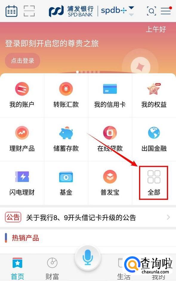 首先点击“全部”按钮,会跳到全部的业务页面;