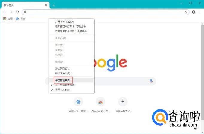 右键单击书签栏,在快捷菜单中点选“书签管理器”。