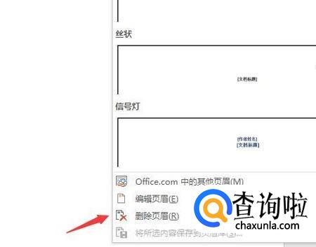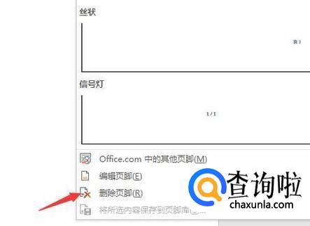 点击页眉的时候,可以看到一个下拉框,这时候选择删除页眉,点击删除后就能看到页眉已经不在了,这时候就可以去设置页脚了。