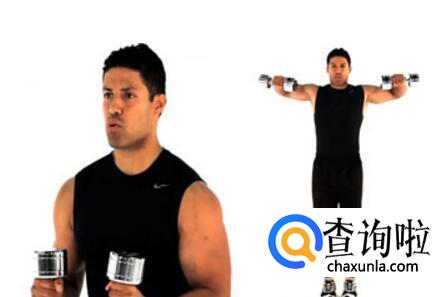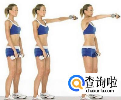 2.用哑铃侧平举来锻炼肩部肌肉,要避免晃动身体,那样会影响效果。