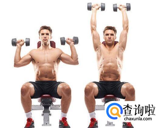 1.哑铃肩上推举能很好地增加肩部的围度,大重量可以使肩部力量和围度飞速增长。