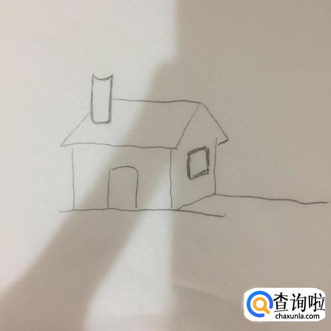 然后画出房子的门和窗户,如下图所示。