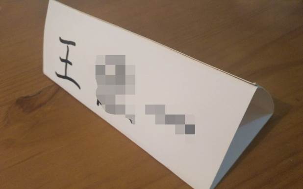 4、除了放桌上的那一面,把另外两面写上名字,看准位置,不要写反了。