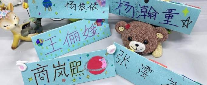 5、撕掉双面胶的贴膜,把卡纸粘合在一起,整整齐齐的一个姓名牌就做好啦。大家看一下是不是特别清晰醒目,过程特别简单,稍大一些的孩子就可以自己动力做一下试试看,锻炼一下孩子的动手能力也不错。