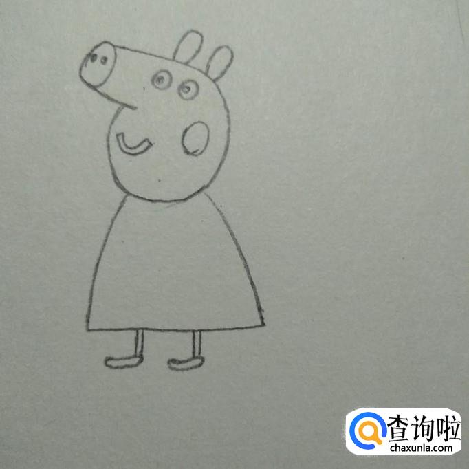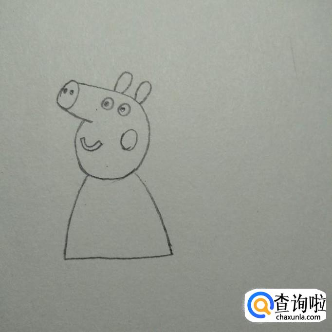 接下来在眼睛的下方画出佩琪的嘴,在嘴和眼睛的右边中间部位画出小猪佩奇的腮红