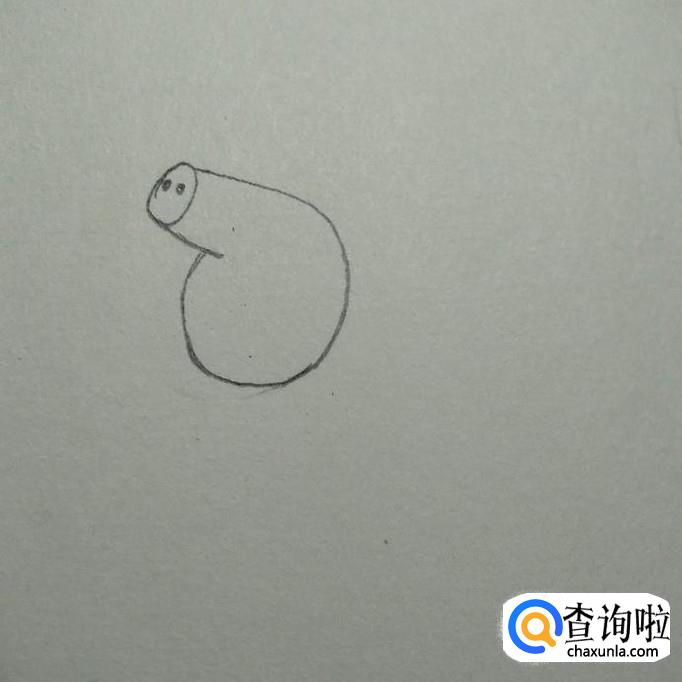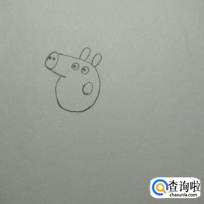 然后我们在鼻子和脸的交汇处画两只小的耳朵,然后在耳朵的下面对应着画出两只眼睛