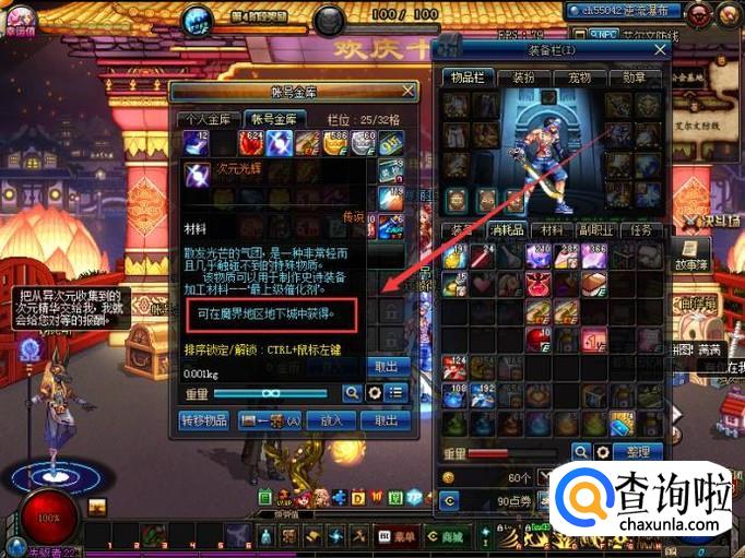 可以看到物品简介里面提到可以在魔界区域获得该物品,事实上,也只有魔界区域地下城才能爆出次元光辉。