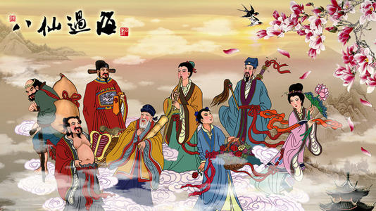 有一天,八仙向西王母拜寿回来,腾云驾雾从东海上空经过,只见海上波涛汹涌,白浪滔天,煞是壮观。于是,八仙决定到海面上玩一玩。