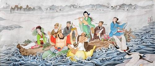 八仙安稳地顺着汹涌的波浪漂去,这与腾云驾雾感觉大不相同,别有一番新的刺激和情调,大家玩得好不快意。