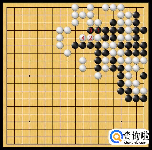 白棋继续于白4处长,由于白三子周围都有白棋,所以白三子有恃无恐,任由黑棋来攻击。如图所示。