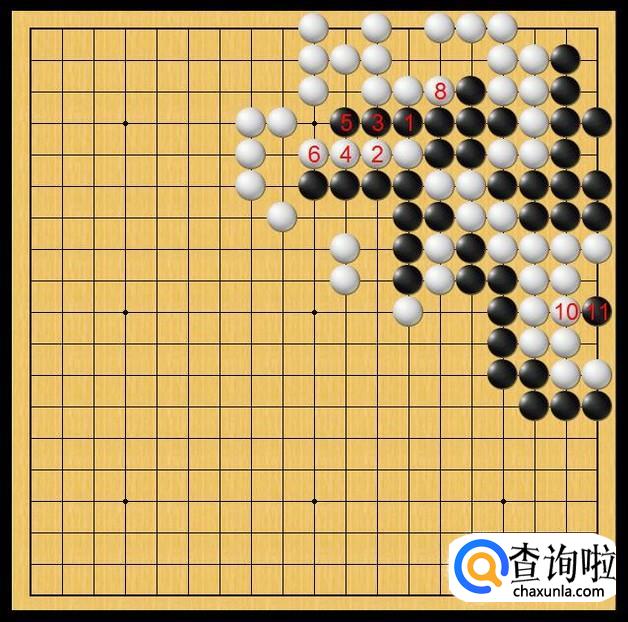 黑棋立刻在黑11处落子,黑棋破眼,避免白棋做起两个眼。如图所示。