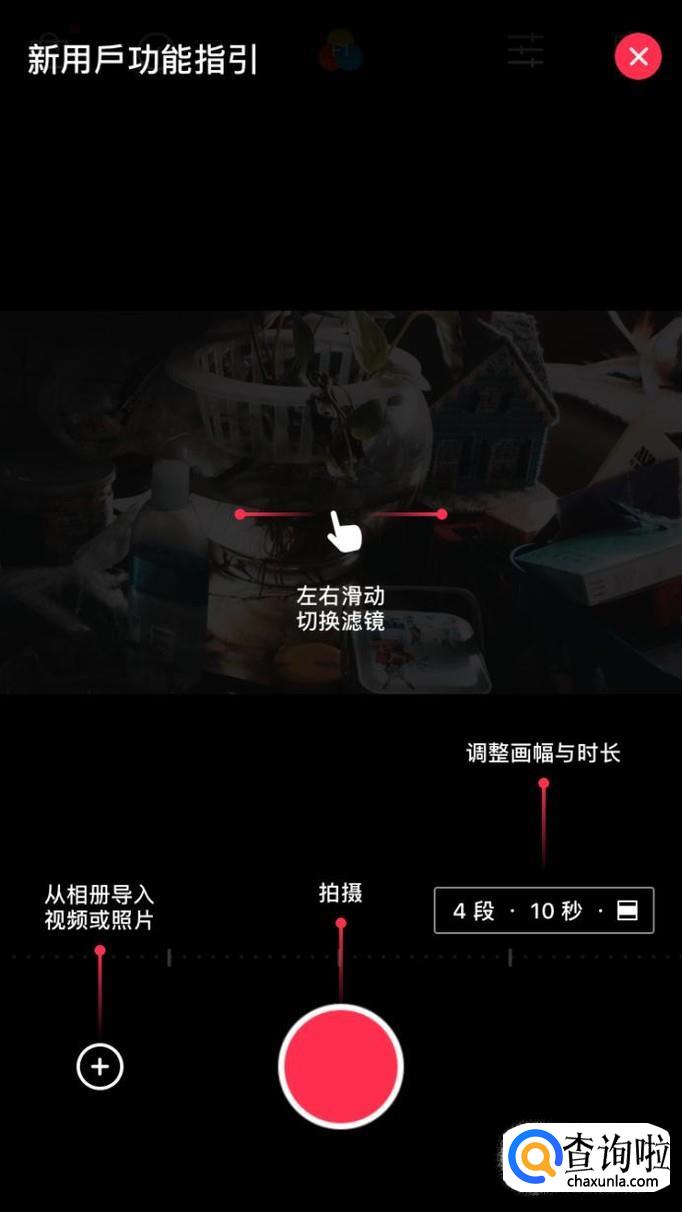 先在头脑里构思好像拍摄的片段,风格和时长。如:拍摄四个画面,总时长十秒钟,需要复古滤镜。ps:左右滑动画面,可以尝试不同的滤镜喔~