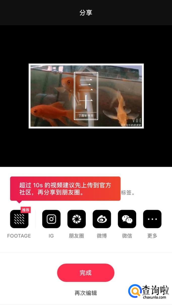生成结束后,属于你自己的mv就诞生了。你可以通过app直接分享到社交网,也可以点击“更多”,保存到手机上。