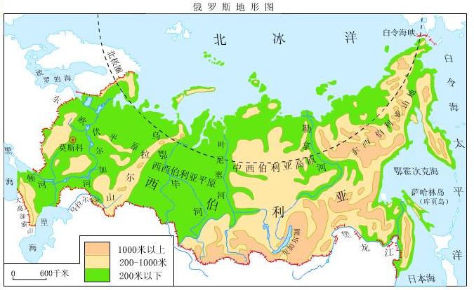 俄罗斯是世界上跨经度最广的国家,东西两段最长达10000多千米。俄罗斯全国都在40°N以北,大部分地区在50°N以北,纬度偏高,北部已进入北极圈,因此气温普遍偏低。