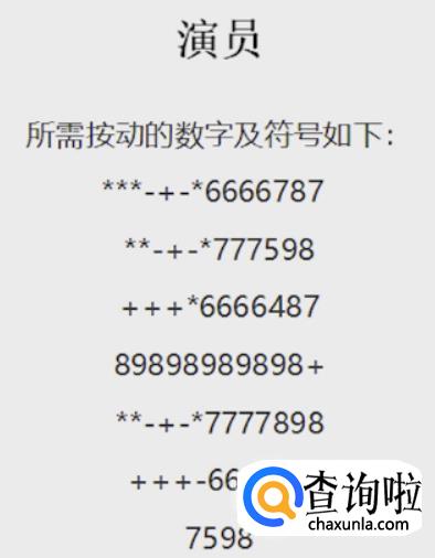接着是也是谦谦的歌“演员”:“***-+-*6666787,**-+-*777598,+++*6666487,89898989898+,**-+-*7777898,+++-666487,7598”。